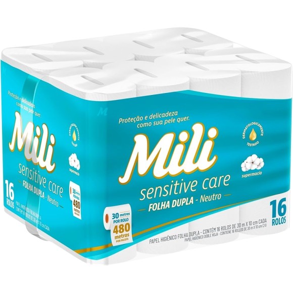 PAPEL HIGIÊNICO MILI SENSITIVE CARE FOLHA DUPLA NEUTRO 16 ROLOS.