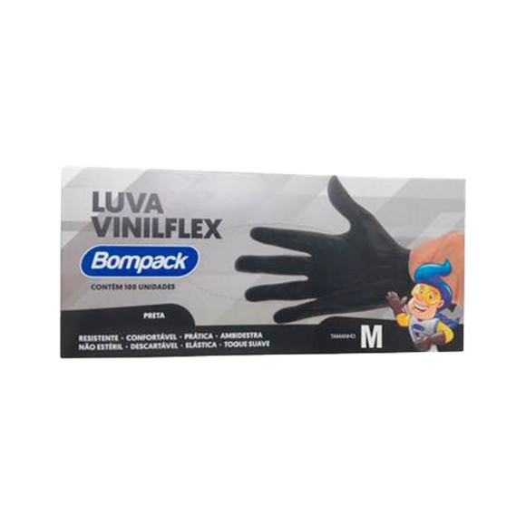 LUVA VINILFLEX BOMPACK PRETA 100UN - TAM M