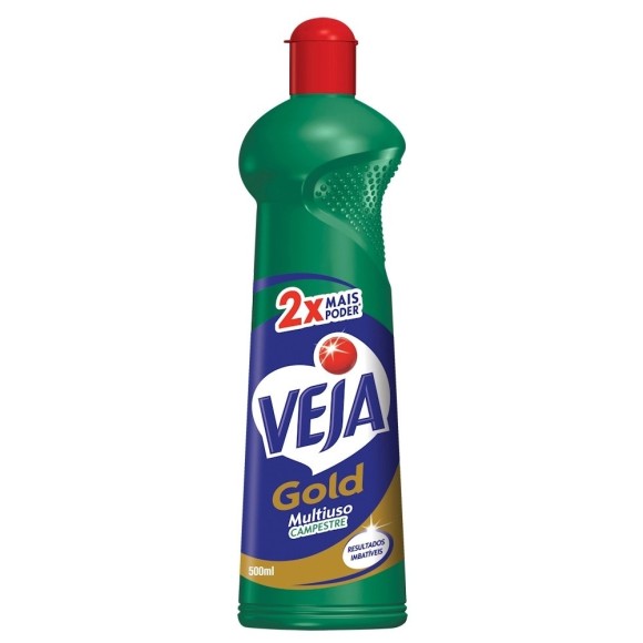 Veja Gold Multiuso Campestre 500ml, 2X mais poder. Resultados imbátiveis, ideal para limpeza em banheiros, pias, azuleijos, plásticos, esmaltados, fogões e superfíceis laváveis, removendo sujeiras como gordura, fuligem, poeira, marcas de dedo e risco de lapís.