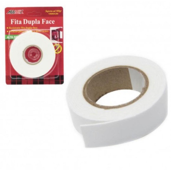 FITA DUPLA FACE ESPUMA ABBMIX, POSSUI ALTA FIXAÇÃO PARA QUADROS E DECORAÇÕES. SUPORTA ATÉ 900gr, SUA MEDIDA É 18MMx3M