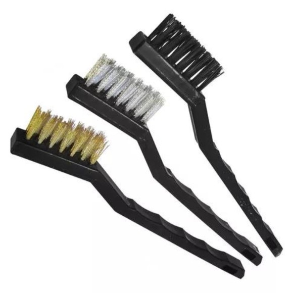 ESCOVA MULTIUSO ABRASIVA MERRICK, kit com 3 unidades, composto por 1 escova com cerdas de latão, 1 escova com cerdas de nylon e 1 escova com cerdas de aço.