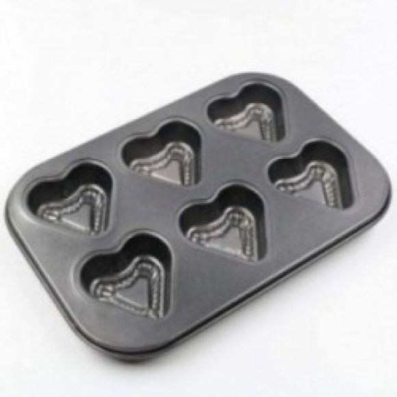 FORMA ANTIADERENTE DE CUPCAKE EM FORMATO DE CORAÇÃO COM 6 CAVIDADES.