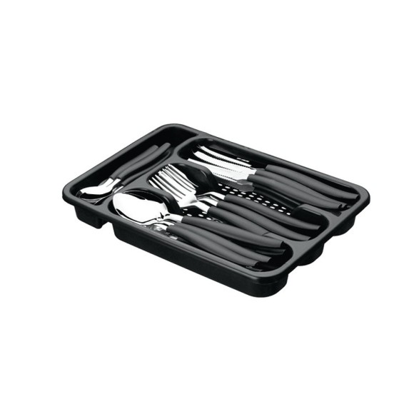 CONTÉM 6 COLHERES DE MESA, 6 COLHERES DE CHÁ, 6 FACAS DE MESA, 6 GARFOS DE MESA E 1 PORTA TALHER