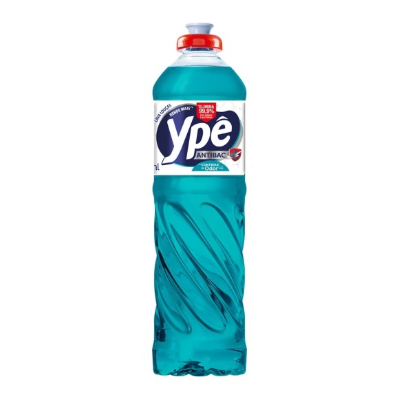 O Detergente Ypê Antibac, é ideal para lavar louças, possui alto poder desengordurante, não resseca as mãos e rende muito mais.