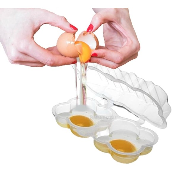 Ovo prático 2em1 é uma forma de plástico para fazer ovo e omelete no microondas com tempo de preparo de 1 a 2 minutos.