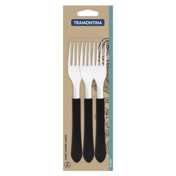 GARFO DE MESA COM LÂMINAS DE AÇO INOX E CABOS DE POLIPROPILENO TRAMONTINA COM 3 UNIDADES , NA COR PRETO.