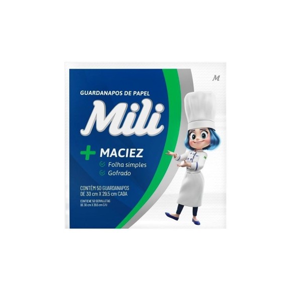 Guardanapo de papel Mili, contém 50 guardanaos de 30cm x 29,5cm.