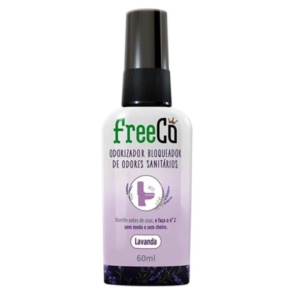 Bloqueador de Odores Sanitário Original Freeco 60ml possui uma fragrância de Lavanda, eliminando de forma definitiva o mau cheiro do nº2 e também o constrangimento em utilizar o banheiro. Esta versão com 60 ml é ideal para deixar em banheiros e lavabos, na sua casa ou no trabalho.